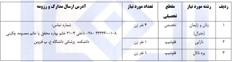 اعلام نیاز به ۶ نیروی متعهد خدمت به صورت هیات علمی رشته های زنان جنرال فلوشیپ نازایی و پره ناتال
