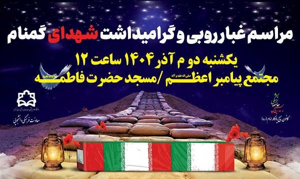 به اطلاع می رساند، مراسم عزاداری ایام شهادت حضرت فاطمه زهرا سلام الله علیها و غبارروبی و گرامیداشت شهدای گمنام و خوش نام دفاع مقدس برگزار می گردد.