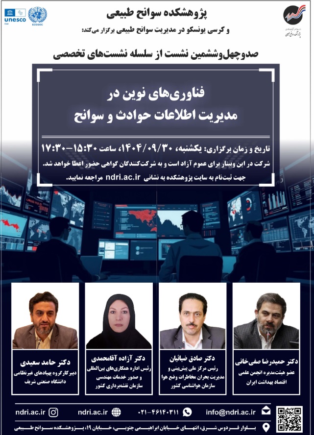 نشست فن آوری نوین در مدیریت اطلاعات حوادث وسوانح ۳۰ آذر ۱۴۰۴ | ۱۲:۰۴ کد : ۵۷۱۴۹ اطلاعیه ارسال به دیگران نام شما ایمیل شما ایمیل دریافتکننده ارسال انصراف تعداد بازدید:۱۹ دعوتنامه نشست فن آوری نوین در مدیریت اطلاعات حوادث وسوانح