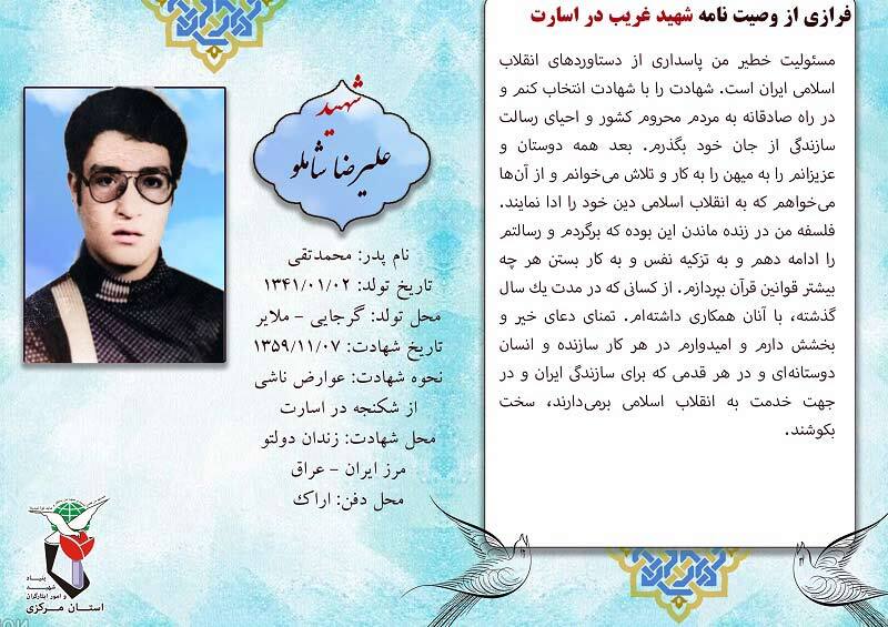 فرازی از وصیت نامه شهدا ۰۵ بهمن ۱۴۰۴ | ۰۹:۴۵ کد : ۵۷۶۸۳ اطلاعیه ارسال به دیگران نام شما ایمیل شما ایمیل دریافتکننده ارسال انصراف تعداد بازدید:۱۱۷ فرازی از وصیت نامه شهدا فرازی از وصیت نامه شهید بزرگوار علیرضا شاملو :